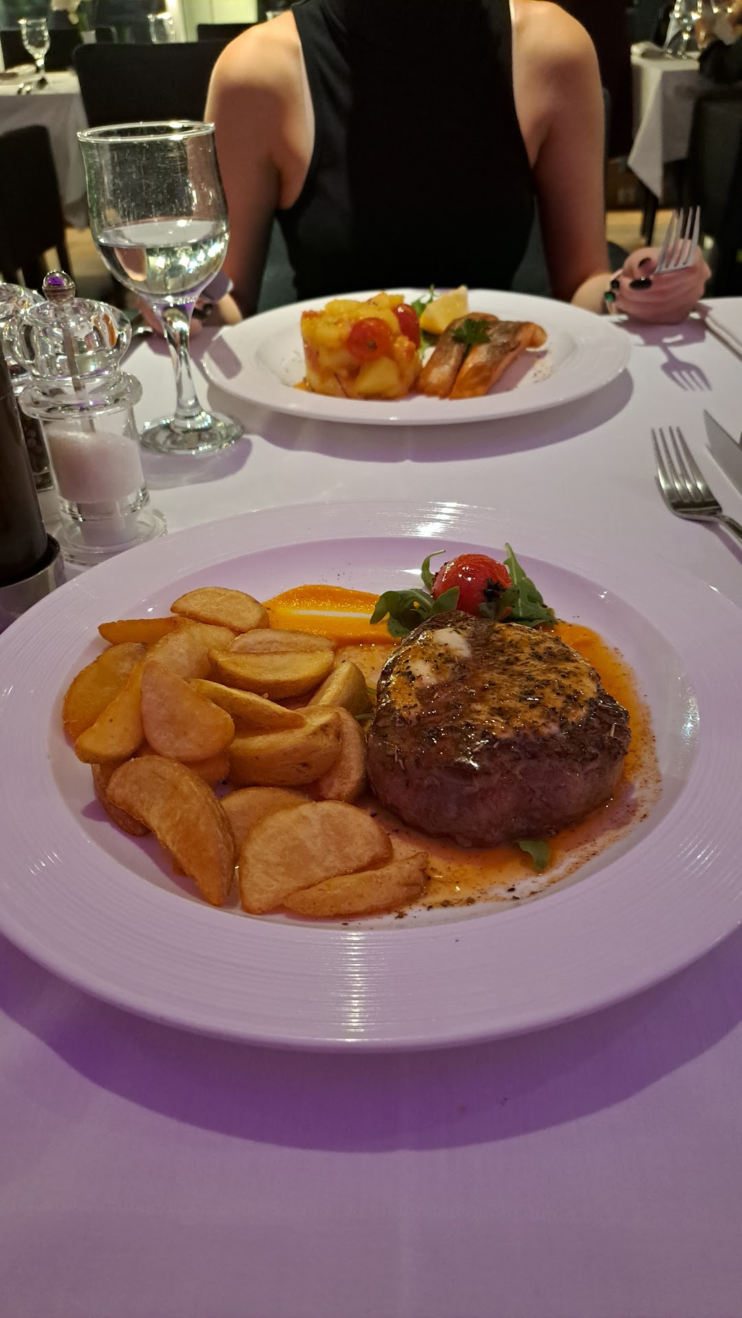 About the food, as like some other places around Bosnia, it is a bit difficult to get correct medium or medium well beef steak. It tends to come in well done. As well as the veal steak, which I expect to be soft and moist than the beef steak. It turns out to be 3 thin slices of a bit rough overly cooked veal with salty white sauce. I should ask first. My bad. The plating is a bit too decent for a fine dining concept