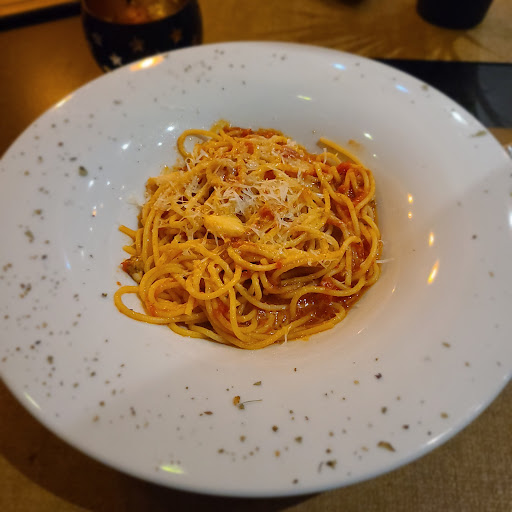 Read moreБыли в этом ресторане, т.к. собрались уже в 23.00 и это одно из немногих мест, работающих до 00.00, а официант сказал, что и до 01.00. Атмосфера оч классная, над дизайном тоже поработали. Есть несколько залов и летняя веранда, каждый найдет себе местечко во вкусу. Мы ели ризотто с креветками, лазанью, суп-крем из брокколи и тирамису. Тирамису редко даже в самой Италии бываеи правильно приготовленный, здесь он идеален! Это именно тирамису по классическому рецепту. Лазанья оч вкусная и сытная. Суп был-таки не крем, а какой-то сливочный с кусочками брокколи, я такой не люблю; но в целом он тоже довольно неплохой. Из-за сливок для меня жирный. Ризотто по вкусу оч хорош, креветок более чем достаточно, но сама консистенция риса для ризотто немного не дотягивает до итальянского, здесь он не в соусе словно, я живу в Италии, поэтому для меня суховато. Но вкус прекрасный! Думаю, еще сказывается то, что мы пришли под закрытие. Официантка была оч приветливой, еду мы ждали недолго. К посещению в...