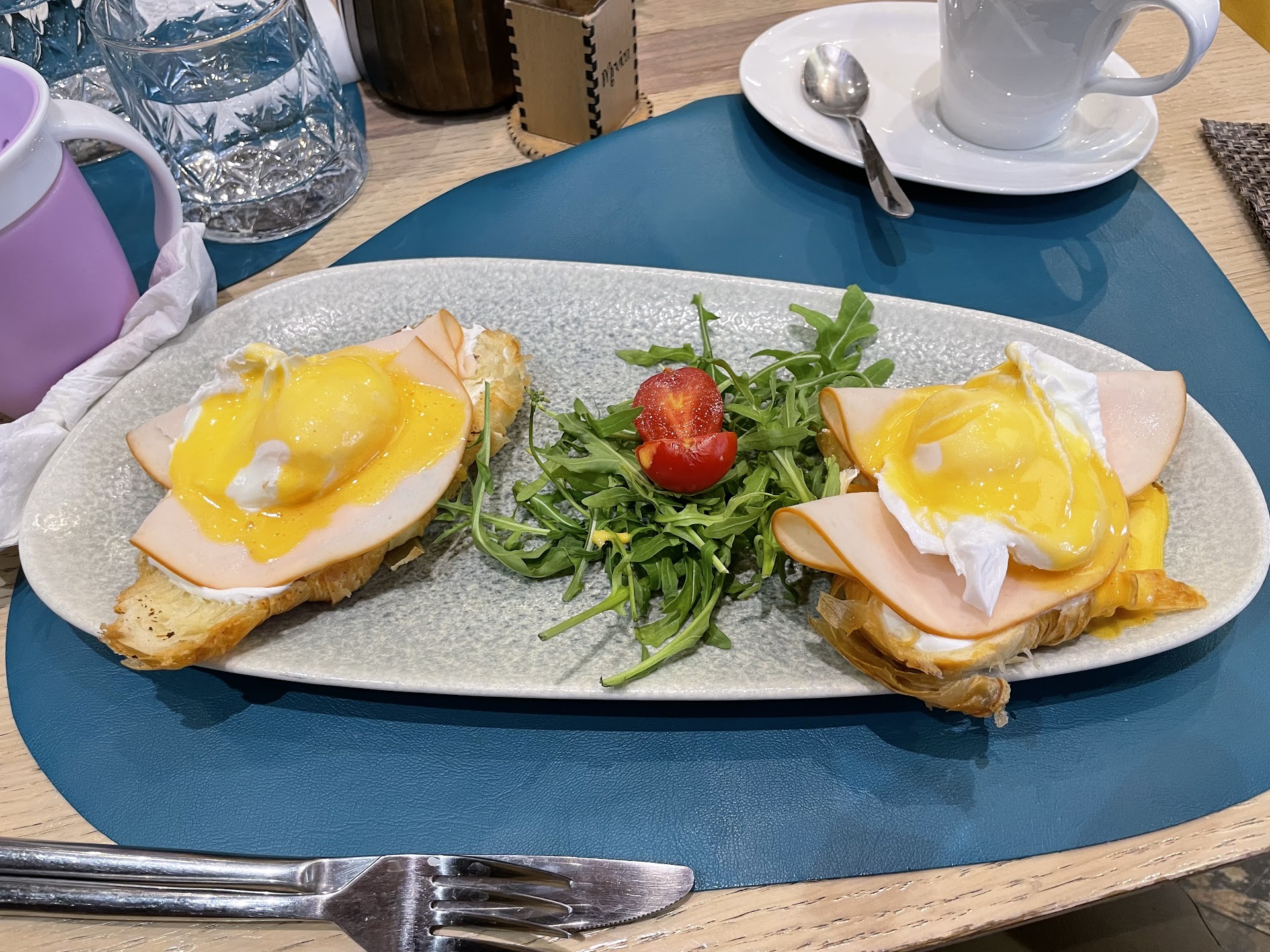 Food Food was really nice, tried the eggs benedicts, omelet and the Bosnian platter containig cheese, kaymak and dried meat, all was very nice. Only orange juice was nit good. Coffee was not good too.
