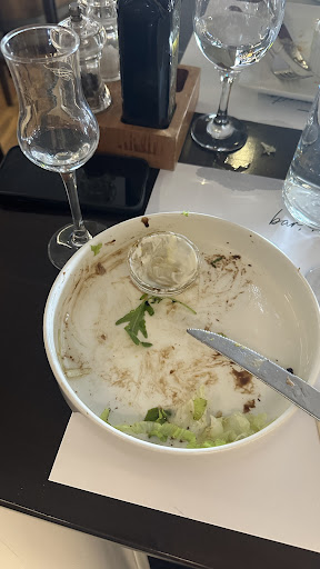 Ambijent: urban, odmjeren, a opet topao kao da ste došli kod nekog ko zna šta je stil, ali ne glumi Pariz. Osoblje? Osmijeh, pogled, mjera. Timski duh se osjeti, u pogledu između zaposlenih, u načinu na koji vlasnica obiđe svaki sto kao da ga je ona postavila. Ali i u nježnosti glavne kuharice: "Blitva i krompir su gotovi, hajde bona i lignje da ti napravim?" E takve stvari otkrivaju pozadinu odnosa između nadređenog i onog koji stvara.