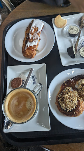 I wish I could give this 0 stars. I have NEVER experienced such rude customer service. I walked in and a lady was blocking the sign that says cash under €10 euro. So once she finished ordering I commenced ordering an espresso and a crossiant. The lovely customer turned around just to warn me that it was cash only. I promptly told the staff member I did not have cash and to cancel my order. she had already clicked espresso on the coffee machine and she made an annoyed, loud sound and literally rolled her eyes and looks so angrily towards me I promptly left. The lovely customer pointed me towards an ATM but I explained that I was actually quite scared to go back in there as she was actually so hostile I was intimidated. The lady felt so awful she handed me cash to pay for my coffee and crossiant. I went back in there and showed the shop worked I had cash and re-ordered my espresso and crossiant. She again made an annoyed noise and literally wouldn't not look at me. She stormed to the coffee machine and out it on again and then handed my my items. I went and sat down outside. It was genuinely such a terrible crossiant it tasted like it was from a packet. Probably because I've come from France where I was blessed with amazing crossiants, but the fact I didn't finish it says enough. I drank my espresso and could not have walked away faster.