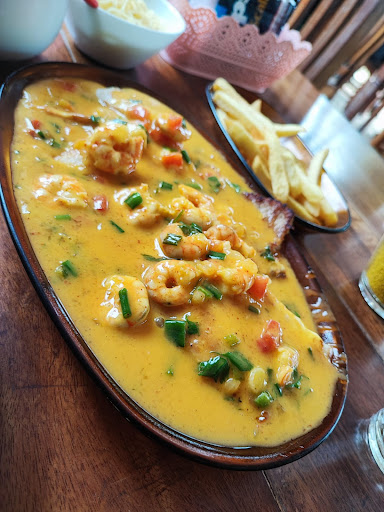 Zachęceni opiniami pomimo pustych stolików - zamówiliśmy rybę w sosie krewetkowym dla 2 osób. Niestety dostaliśmy 3 kawałki ( jak podzielić to na 2 osoby ?!?🤔) przesmażonej ryby , suchej , że ciężko było ją przełknąć. Reszta dodatków ok ale raczej bez smaku, mało przyprawione. Ilość dodatków jest spora dlatego są 2 gwiazdki gdyż najeść się można ale smaku to tu raczej nie oczekuj. Druga sprawa : siedliśmy sobie przy stoliku blisko drogi gdy dostaliśmy jedzenie cała obsługa stała i siedziała obok krzycząc zaczepiając sąsiadki jak na targu , nawet kucharka wyskoczyła krzycząc do przechodzącej koleżanki z dzieckiem … po prostu jakby nas nie było, to drugie to tylko sugestia, że goście przychodzą zjeść do restauracji w spokoju, nie z obsługą wpatrującą się w nasze jedzenie . Raczej żałowaliśmy, ze tu przyszliśmy dania obok w restauracjach wyglądały lepiej. Dziwie się skąd te opinie 🤔....