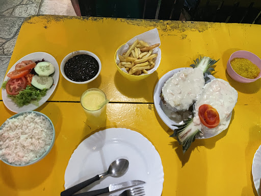 I rarely put one star to a restaurant and I feel bad doing so but you HAVE to know this before risking your chance there. We asked 3 times if the fries were homemade and the waiter lied to us twice straight in the face and didn't reply the third time: they were obviously frozen (I don't know much about fries but they were disgusting, even for frozen fries). The shrimps "na brasa" were so oily that they must have dipped them in oil to make them less dry (but of course they were still super dry). And come on, this amount of shrimps for 80 reals??? We also asked if there was garlic in there, the waiter said no but we're pretty sure there was. The pargo was burnt and it was quite mealy. Overcooked. And they forgot a plate of vegetables (which in itself I would forgive of course but the guy clearly saw that we were annoyed and did not help).