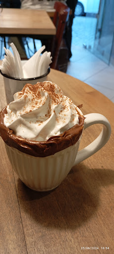 Um achado em St Teresa, local pequeno, mas a comida supera isso. Pedimos um capuccino de inverno, um chocolate quente, um queijo quente e uma torta de chocolate belga. O capuccino estava ótimo; o chocolate esperava ser mais grossinho, mas estava bom também; a torta doce e úmida na medida certa, mto boa; o queijo quente é perfeito, apenas peçam, é uma mistura de queijos deliciosa, vale mto a pena. com certeza quando estiver de novo em St Teresa passarei nessa cafeteria somente para pedir esse...