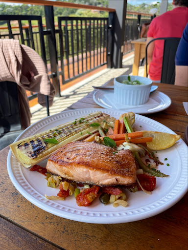 Pedimos de entrada os pastéis de pernil com queijo, prato do festival gourmet desse ano, e estavam crocantes e sequinhos. Os molhos que acompanhavam o pastel eram muito bons, e a porção de 6 unidades é bem servida. De prato principal pedimos o salmão com legumes e arroz de pesto (meia porção) e o filé parmegiana com massa com manteiga de ervas. O salmão estava delicioso, mas posso dizer que o filé parmegiana foi o melhor que já comi na minha vida - daqueles de se cortar a carne com a colher, de tão macia. Destaque para qualidade do queijo e do temperinho fresco do manjericão. A massa também estava à altura, e é um toque original no lugar do comum arroz branco. Não pedimos sobremesa.
