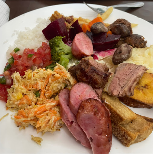 Read moreRestaurante muito limpo. Com variedades de comida( possui self service, porções, variados tipos de saladas) e sobremesas( pudins, mousses), bebidas variadas( sucos diversos, refrigerante lata ou litro descartável, cervejas, vinhos, etc). Possui uma churrascaria com variados tipos de carne( porco,boi,frango, carneiro, coração,queijo,). Preço rozoável.Possui um segundo piso para realização de festas de aniversário, casamento, reuniões. Lugar muito bom, aconchegante ,não...