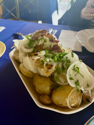 Read moreRestaurante único em pedra azul! Experimentamos o bacalhau na brasa e os bolinhos de bacalhau e estava tudo maravilhoso. O atendimento é excelente, o local é lindo e bem arejado, a comida é perfeita. A porção para 2 pessoas serve bem 3 pessoas, o bacalhau é muito bom e vem acompanhado de arroz, batatas ao murro e cebola. No final, experimentamos o pastel de nata que estava...