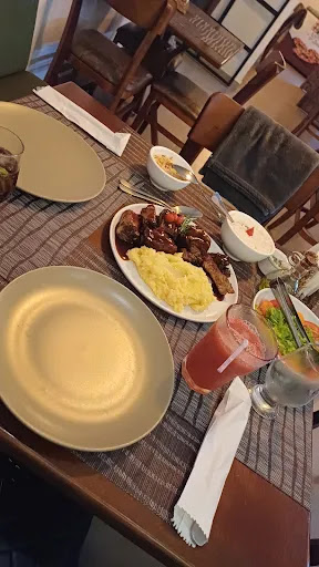 Read moreLugar aconchegante, intimista e confortável. Fomos no domingo (26/05/24) a noite e não estava cheio, os pratos chegaram bem rápido. Pedimos a costelinha de porco e estava delicioso! Pedimos ainda o suco de morango que estava gostoso, apesar de um pouco ralo. De sobremesa uma torta de chocolate com morango que estava uma delícia também! Os atendentes muito educados, nos receberam super bem! Tem cobertinhas em cada mesa para aquecer nos dias mais frios, o que é um charme! Só achei que a playlist não combinou muito com o local, pois estava tocando uma música eletrônica, acho q algo mais romântico...