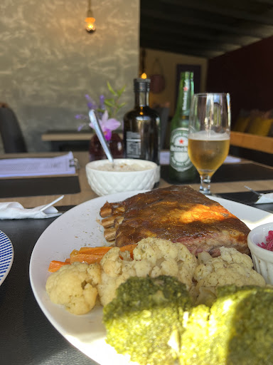O restaurante é dedicado às carnes defumadas. Se você não curte carne defumada recomendo não ir. Fomos 2 vezes na nossa estadia em Pedra Menina. As carnes sao incriveis. Um ancho delicioso, muito macio e aromatico. A costela de porco é mil vezes melhor que a do Outback e vem com molho barbecue feito na casa. Não tem opção de sobremesa. Não é um restaurante barato, mas vale a experiência. São poucas mesas e não fazem reserva. Recomendo chegar cedo. Ah eles vendem congeladas as carnes que são defumadas la. Pena que não tinha armazenagem suficiente para trazer. Minha observação sobre o serviço é que os funcionários podiam saber mais dos produtos vendidos no restaurante. Podia ter a data de torra do café e também o peso por quilo das carnes ali vendidas....