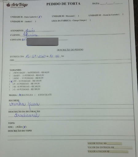 Read moreBoa Noite, quero dar um feedback e fazer uma reclamação sobre essa unidade... na quinta-feira dia 13 de julho 2023 entrei em contato no WhatsApp encomendando uma torta PP de ninho puro pra hoje dia 16 de julho de 2023, e na mesma solicitação comentei que na última vez que comprei torta na unidade que foi no meu aniversário em maio a torta veio sem tampa consequentemente a massa estava seca, aí quem me atendeu falou que teria a tampa dessa vez, então fui hoje lá buscar a encomenda e mais uma vez a torta não tinha tampa, e o pior é que quando cheguei em casa e fui cortar a torta o recheio também não era o que foi pedido, EU PEDI NINHO PURO E PELO JEITO COLOCARAM O RECHEIO UM CREME BRANCO E COM CHOCOLATE PRETO E BRANCO (QUE POR SINAL ESTAVAM SUPER DUROS DE QUASE QUEBRAR OS DENTES), infelizmente já é segunda vez que passo por algum tipo de incômodo com essa unidade, não sei como estão as outras mas essa da Pedro Ludovico tá deixando a desejar no quesito tortas.