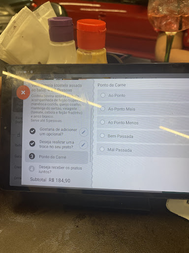 Read moreExperiência não foi boa, comida meio q sem sabor, temperos, não tem todos os itens que está no cardápio do rodízio,. Olha q Cheguei cedo p o rodízio, mesmo assim Dá uma desculpa sem lógica pelos itens que falta. Que são vários tipo , dadinho de tapioca fígado em tiras com jiló e cebola croquete, pastelzinho, linguiça cuiabana. Fiquei por bastante tempo na mesa sem indicação que era rodízio . quando estava quase para sair passou uma garçonete muito educada e colocou a placa de indicação de rodízio na mesa sendo que vários garçons passaram por mim atenderam a mesa sabiam que era rodízio e não colocaram a placa informando: tál. Fiz o pedido de um abacaxi q nunca passava, quando o garçom passou deixou apenas um pedaço quase jogando o abacaxi em mim de mal...