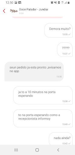 Read moreDia 31/07/21 trabalhei na hora do almoço como entregador, após o trabalho pedi uma torta pelo Ifood na doce paladar do jundiai para poder lanchar. Sempre pago meus pedidos online para não movimentar dinheiro. Fui ate o estabelecimento buscar meu pedido e estava com a bag de entrega, fui ate o balcao de clientes para retirar meu pedido(eu comprei e paguei antecipado), ao ficar na fila a recepcionista ficou incomodada e pediu para eu me retirar e aguardar do lado de fora, informei a ela que queria retirar (meu) pedido, e ela insistiu que retirada de pedido era do lado de fora da loja. Esperei alguns minutos e enviei mensagem perguntando se iria demorar meu pedido, e não me responderam, após mais de 20 minutos me responderam que estava na loja pra retirada. Lembrando que na parte externa estava um sol forte e não havia nenhuma cadeira ou algo para esperar. Continuei no chat perguntando se tinha permissão para entrar na loja tendo em vista que fui informado que não era pra permanecer no local para retirada do meu pedido. Depois disso não me responderam mais. Achei um absurdo um cliente que comprou um pedido não poder ser atendido da mesma forma so porque estava com bag ou roupa que nao se encaixa no padrao deles. Sou entregador sim, mas também tenho direito de comer onde quero já que havia pago antecipadamente pelo alimento. E um desrespeito muito grande este tipo de tratamento diferenciado simplesmente porque não estava bem vestido para o local. Lembrando que informei a recepcionista que fui retirar o (meu) pedido e não buscar entrega, inclusive falei duas vezes isso mas fui informado que retirada era feita na parte externa do local. Fiquei muito indignado, muito triste pela falta de respeito por parte do...