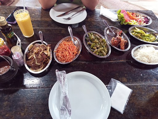 A parte gastronômica; O sabor é bastante regional algo agradável pois tudo entra em harmonia, pode ser que alguns sintam bastante familiaridade com a comida pois realmente é uma comida caseira, a variedade dos pratos é ampla, apesar de sentir falta de porções pela metade ou pratos individuais, já que praticamente todo o cardápio é baseado em pratos para dois. Sugeria algo que ao servir pudesse mater o calor da comida por mais algum tempo. A quantidade de comida é boa para pessoas que não comem muito. As bebidas possui escolhas tradicionais sem nada de especial, por mais que o cardápio informava que o suco na qual pedir era industrializado me foi servido um natural.