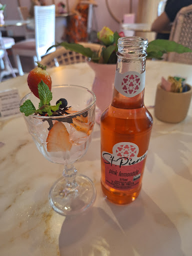 O local é lindo, jardins externos, toda decoração é na cor rosa, no ambiente interno flores por toda parte, tudo de muito bom gosto.