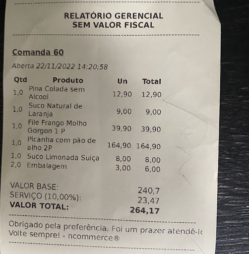 O atendimento era demorado demais e meio que aconteceu uma disputa, entre as mesas vizinhas, sobre o tempo de chegada das comidas, por exemplo: “aquele grupo chegou meia hora depois de mim e já está comendo”.