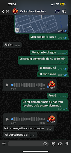 Só acho uma falta de respeito moro tão perto quando não anota direito fala que foi erro do entregador, depois não achou endereço, e por aí vai tem que melhorar muito antes era bom mas acho que sobe na cabeça e não faz questão, caso de pedir lanche muito mais longe e não...