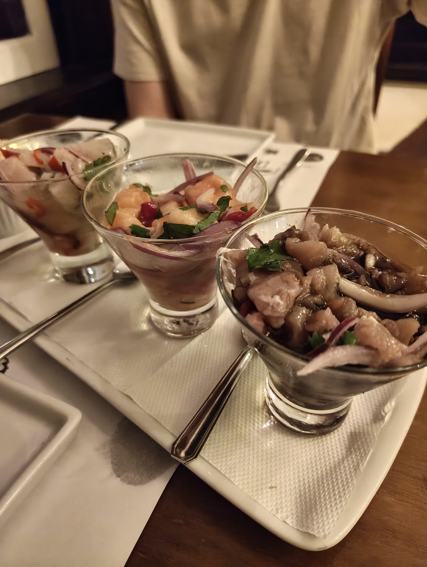 O trio de ceviche é indescritível! Simplesmente uma explosão de sabores e uma forma ótima de começar!