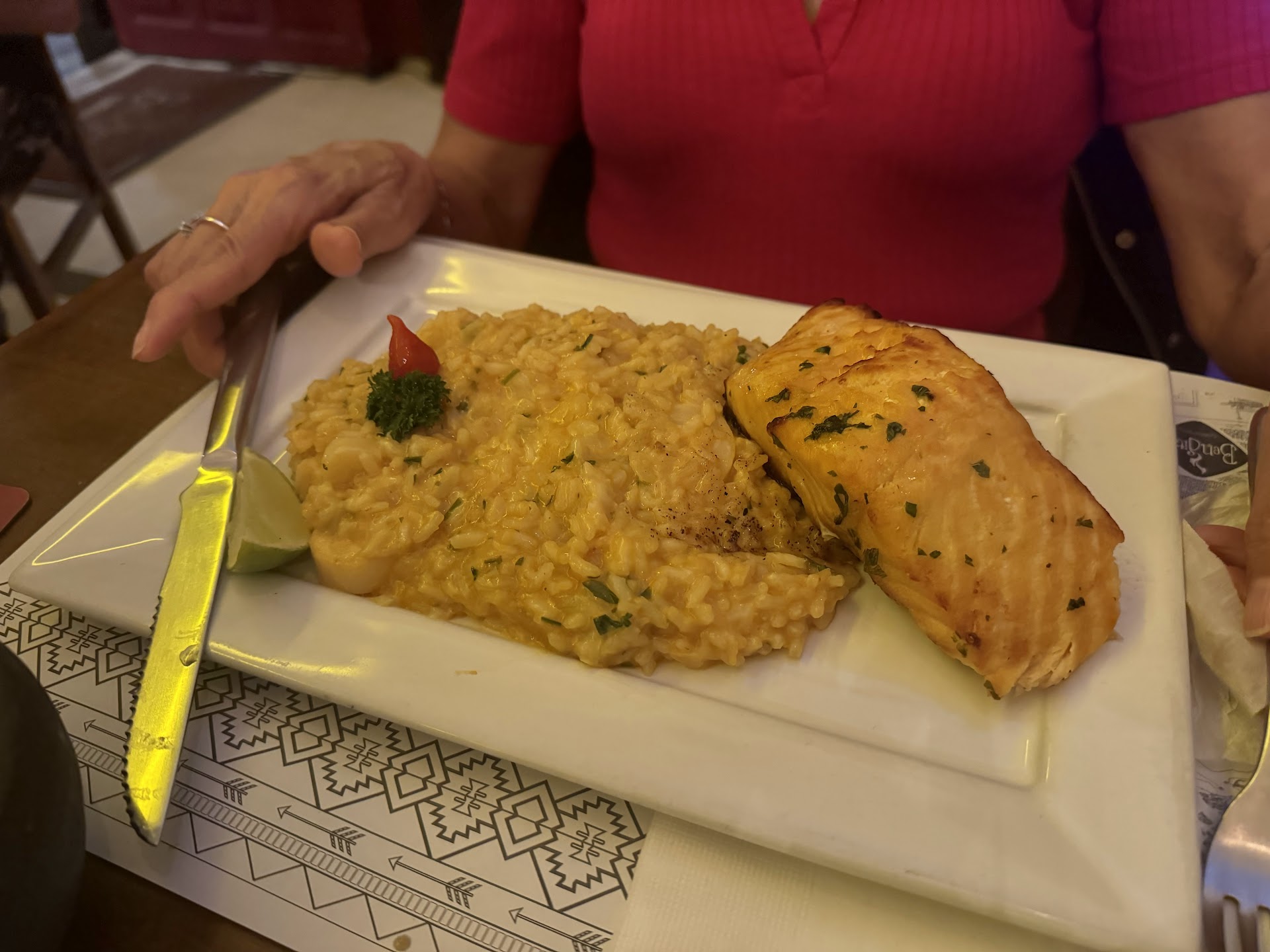 8 meu marido pediu prato de peixe com camarão; estava bem temperado; mas estava muito puxado pro alho (e eu amo alho hein).
