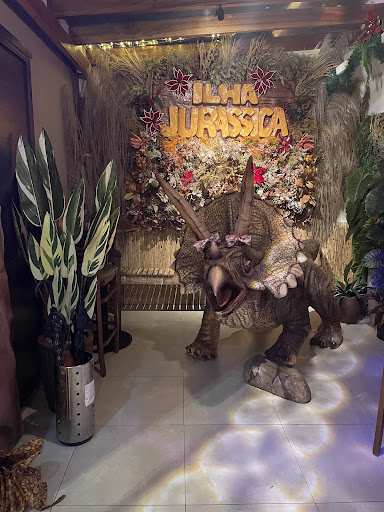 Read moreFoi Maravilhosa a experiência na Ilha Jurássica. Fui com meus dois filhos pequenos e eles curtiram demais! Que ambiente incrível! Super bem decorado e preocupado com os mínimos detalhes. Até o jogo americano, que é descartável, vem com o mapa do Brasil e todos os dinossauros achados em território nacional. Sensacional! Atendimento impecável, realizado pela Maria mas todos os demais garçons são eficazes e atenciosos. Cardápio repleto de opções deliciosas. Tem um drink não alcoólico para crianças feito com algodão doce que o garçom finaliza na mesa, na frente da criança tornando o momento ainda mais especial. Pedimos uma entradinha chinesa de barriga de porco pupurucada incrivelmente deliciosa e de prato principal pedimos a costela prime que vem com bife de chorizo que servem facilmente quatro pessoas pois assim como as carnes, os acompanhamentos são fartos e mto bem servidos. Para as crianças pedimos hambúrguer que é artesanal e batata frita que mantém a crocância mesmo depois de fria. Ainda tem o Milk Shake de Ninho com Nutella que é surreal de bom. Escreveria mais elogios mas o espaço é pouco. Dou 5 pq não...