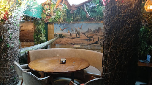 O ambiente é bem decorado e representa bem a temática de dinossauros, que é reforçada pela caracterização das garçonetes como expedicionárias que atendem aos clientes como "Aventureiros".