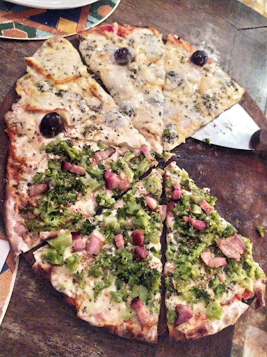 A pizza era saborosa, apesar de pouco recheio. A massa, para meu gosto, poderia ser ligeiramente mais grossa. Parece massa de pastel.
