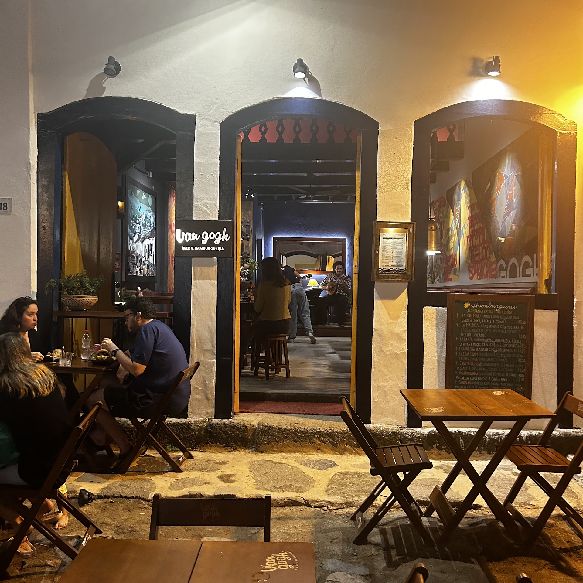 Read moreExcelente surpresa que tivemos em Paraty. Ambiente: confortável, intimista e descolado. Possui várias pinturas em suas paredes do artista que dá nome ao estabelecimento, além de outros apetrechos que combinam com o local. Comida: pedimos o La Maldita e o La Cheddar. Ponto da carne espetacular! Eles não perguntam pelo ponto da carne; se gosta de sola de sapato, peça (não sei se fazem assim). Possuem opções vegetarianas que parecem ser boas, mas meu espírito ainda não está tão evoluído para tal. O gorgonzola do lanche não estava exagerado, e o pão artesanal faz a diferença. Bem montado, nada despenca quando você morde, e não demoraram para fazer (a casa não estava cheia). A batata frita que acompanha o lanche é rústica, com um tempero muito gostoso, e já acompanha o lanche em uma porção suficiente, considerando o tamanho do lanche; estava crocante e macia, do jeito que tem que ser, e não estava carregada de óleo. Bebida: pedimos um Jorge Amado, e que drink gostoso! A Gabriela usada no estabelecimento é de um produtor local (mais suave que as gabrielas comuns), o seu Raimundo. Gostamos muito, e não tive vontade de pedir em mais nenhum outro local para não estragar a bela surpresa. Preço: quase tudo em Paraty é absolutamente caro, mas aqui achamos o preço justo pelo que entregam, simples assim (média de R$30 reais em cada lanche e de R$20 a R$25 reais por drink - 09/21). Parabéns aos irmãos que idealizaram o local, é absolutamente imperdível comer ao menos um...