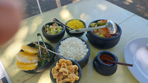 Read moreFui num domingo, que tem comida a quilo, e a fila é ENORME, principalmente para pesar o prato. Acho que como eles não trabalham nesse esquema durante toda a semana não possuem tanta dinamicidade pra isso. Local que não seja no sol também não é tão fácil conseguir. Numero de funcionários pra servir as mesas e limpa-las tbm é reduzido. A comida é normal, as sobremesas são muito boas, vale a pena...