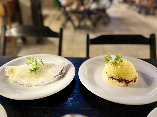 Pesquisei pelo Google maps um café próximo ao hotel onde eu estava hospedada. Ao chegar ao local tive uma grata surpresa! Que ambiente bonito, aconchegante e acolhedor! No horário em que fui o café tinha acabado de abrir porém o gerente "Caveira" nos atendeu prontamente de maneira satisfatória, foi muito gentil e inclusive tirou fotos! Eu e minhas amigas pedimos tapioca que achamos gigante kkkk e um café. Tudo muito bem feito e com capricho. Dei 4 estrelas pelo ambiente pq fomos por volta das 17h e eu não vencia espantar os pernilongos e saí cheia de picadas, portanto fica a dica: se forem das 17h às 19h preparem...