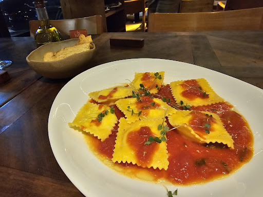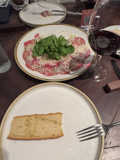 Read moreEspaço aconchegante, Porém as mesas são pequeninas.A comida é boa, meu esposo pediu um risoto de costela, que estava bem saboroso,mas o prato que eu pedi não gostei, era carne com nhoc de batata, achei seco, este era sem molho, parecia mais batata noisette . pedimos um carpaccio de entrada, que veio com apenas três Torradinhas de meio centímetro de espessura e a carne era tão fina, que achei que era uma pasta colocada no prato, já comi em vários lugares nunca vi tão fininho, mas Estava gostoso, Entretanto, quando pedimos mais um pouquinho de torradas trouxeram mais seis, tmb finas, mas nao temperadas como as primeiras, qd veio a conta vimos q cobraram oito reais por pelas torradinhas, Achei muita usura esta cobrança, a porção nao passava de 1 pão francês.... ate porquê consumimos quase R$500 , pois Pedimos vinho... Acho que poderiam ter mimado o cliente com uma cortesia das...