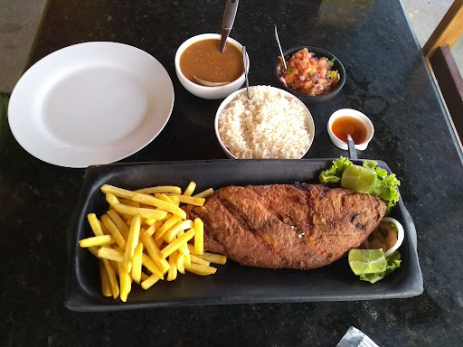 Read moreOs preços são bastante justos, a comida é muito bem temperada, muito saborosa. O pudim deles é um show à parte. Mas fiquei intrigada e até decepcionada com a falta de padrão no tamanho dos pratos. Quando cheguei um casal pediu um peixe recheado de camarão. Lindo! O peixe veio grande e com bastante recheio. Estava tão esteticamente bonito que as pessoas de minha mesa decidiram pedir o mesmo e assim o fizemos. Para nossa decepção, o nosso peixe veio pequeno e quase sem camarão. Ficou um constrangimento geral na mesa, mas achamos melhor não reclamar, porque talvez simplesmente não tivessem naquele momento peixes tão graúdos. Para nossa surpresa, outra família que chegou depois pediu o mesmo peixe e ele veio igualmente enorme ao da mesa anterior... fica a dica então para padronizarem o tamanho dos pratos, porque francamente me...