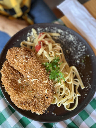 Há um tempo que queria ir na Parmaria, sempre achei o local lindo vendo de fora e ontem cheguei a conclusão que por dentro também é lindo! O atendimento é excelente, Laís (chef) manda bem demais!!!! Experimentei o Risoto Costello e não me arrependo, na temperatura certa, a carne suculenta, nada enjoativo, o molho barbecue da uma quebra no sal (não que seja extremamente salgado) e equilibra perfeitamente. A única coisa que me incomodou é que o barbecue não parecia ser caseiro (pode ser impressão minha também). O outro prato que experimentei foi a parmegiana de frango. QUE MOLHO DE TOMATE É ESSE? PERFEITO! O frango uma delícia, o mix de queijos bem derretido e maçaricado, da um toque super especial. Pedi também uma taça de vinho seco (não vou falar o rótulo por que não lembro o nome, mas casou muito bem com os pratos). Pra quem não entende de vinho o cardápio ajuda muito nesse quesito! Existe uma parte do menu que explica que tipo de vinho harmoniza com o prato que você escolheu, super intuitivo!