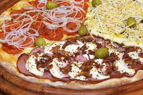 Read moreFui a pizzaria com minha noiva hoje de noite pegar uma pizza grande para levar. Pedimos 3 sabores. PI PIII e saborosa. A pizza tem muito recheio porém sem sabor. Colocam muito apresuntado e catupiri para fazer volume mas não sentimos gosto. Primeira vez que vimos pizza sem queijo. Ainda teve o fato do atendimento enrrolando. Primeiro a moça nos apresentou a promoção de pegar 2 pizzas por 50 reais. Ela disse "leva se nao aguentar come amanhã". Queríamos uma média pois não conhecíamos o local. Como os precos eram próximos fui alterar e um rapaz nos disse que nao podia levar as pizzas e so comer no local. Sem mais... Nao gosto de avaliar negativamente... Mas como o local aparentava ser bom, foi uma grande...