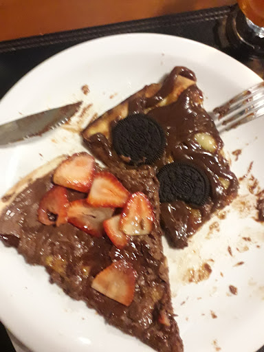 Há uma boa diversidade de pizzas, com sabores muito bons. Experimentei as de quatro queijos, frango com catupiry, Nutella com morango, chocolate com Oreo e Romeu e Julieta. Destas, a observação negativa vai para a de Nutella, que parecia mais um.creme do que a Nutella propriamente dita.