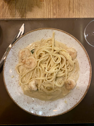 A comida estava ótima, bem servida e muito saborosa. Pedimos os seguintes pratos: Fettuccine com Camarão ao Limone; Risoto de Cogumelos e o Filé Mignon alto e Moho Roti. Todos estavam ótimos e com certeza valeram o preço! Para beber, pedimos uma Soda Italiana e um London Mule, saborosos e refrescantes.