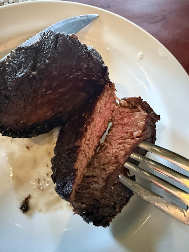 Read moreNo horário de pico havia poucos garçons, o que fez com que demorasse bastante até que viessem anotar nosso pedido. Pedi um filé bem passado, inclusive meu marido avisou para partirem ao meio para garantir o ponto certo. Porém, não seguiram a orientação: o filé veio mal passado, a ponto de sangrar no prato. Eu mesma precisei partir ao meio e solicitar que fosse passado novamente, reforçando que queria bem passado. Ainda assim, o Filé veio apenas ao ponto, e precisei pedir mais uma vez para corrigirem. O feijão tropeiro estava com cheiro meio azedo (tanto o do meu marido como o da mesa ao lado), mas segundo ele, o gosto estava ok. Os demais complementos (batata e purê) estavam bom. Além disso, o copo em que serviram a bebida estava sujo, o que foi bastante...