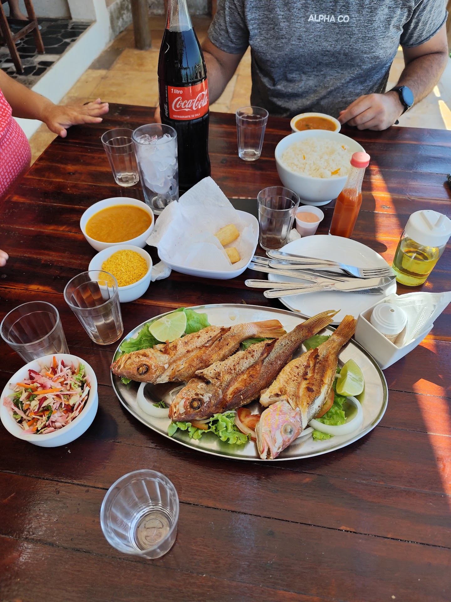 O peixe vermelho estava impecável, o arroz soltinho, e o feijão tinha aquele gostinho de comida feita com capricho. Para acompanhar, os drinks foram um show à parte: saborosos e equilibrados. A cerveja bem gelada completou o clima perfeito.