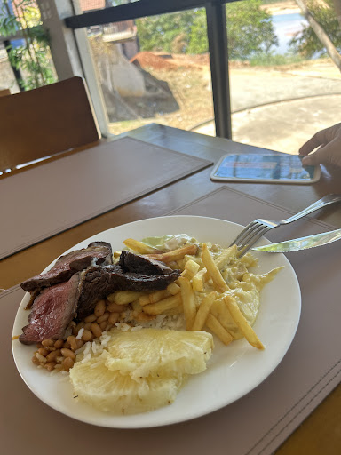 Read moreComida caseira bem temperada. Ótima localização. Tem estacionamento em frente O lugar é bem amplo e arejado. Como é uma cidade muito quente, a climatização faz toda diferença. Gostei do preço. Não é exagerado como muitos lugares que oferecem a mesma qualidade. Fiquei satisfeito com as opções disponíveis para consumo. Rodízio, self service a vontade e também tem a opção de se pesar para pagar por quilo. Merece uma fachada mais atrativa e acho que seria conveniente se cuidassem da pracinha em frente. Isso melhoraria a paisagem vista de dentro da churrascaria e traria uma melhor impressão para aqueles que chegam. Pontos fortes: Atendimento e sabor. Ps. Senti falta de sobremesas geladas. A...