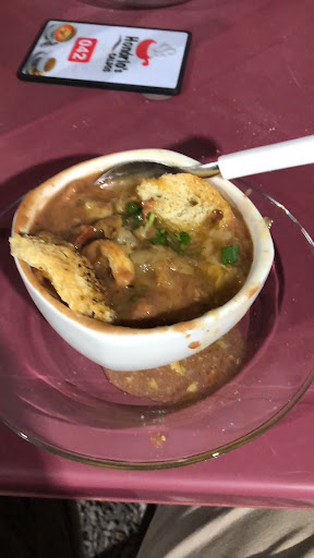 Lugar serve caldo que é uma delícia e possue variedades de caldos, é também possível jantar no local quem vem acompanhamento um espetinho de carne ou você também pode escolher seu próprio espetinho, lugar bom para ir com a família e amigos, não é um lugar com barulho, atendimento também é rápido e prestativo, possue banheiro acessível, possue cadeiras ao ar livre e reservado, gostei muito do local digamos que...