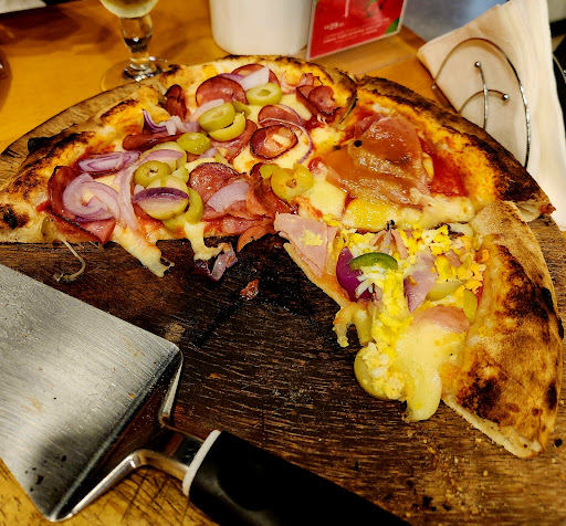 Mais uma agradável surpresa em minha passagem por barreiras! A casa histórica totalmente restaurada e a arquitetura interna de extremo bom gosto já valem a visita. Localizada dentro da área do centro histórico, essa pizzaria apresentou atendimento muito caloroso e cordial, além de pizzas muito bem preparadas e saborosas. Não conheço a outras pizzaria da cidade mas imagino que esta tenha preço acima da média por oferecer um produto Premium....