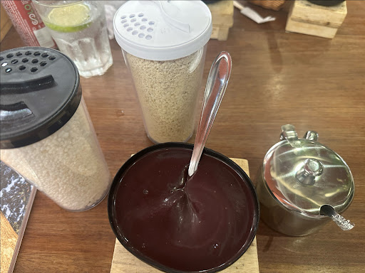 Read moreFoi conhecer o restaurante na hora do almoço, primeira dica, se prepara para a fila de espera e não vá com pressa. O espaço não é muito grande, então logo está cheio. Mas tem uma pessoa que organiza a lista de espera e mesa do lado de fora para aguardar. A proposta do restaurante é degustação de comidas típicas, então tem menu de mini porções dos pratos típicos, mas também tem porções em tamanho normal para uma refeição. Eu escolhi apenas o vatapá para experimentar no prato principal, e já digo que não é o vatapá tradicional, ele é modificado, tem gosto diferente (mas não é ruim), textura diferente, é mais consistente, e mais adocicado que o original. A porção mini só serve para degustação, então só vai saciar se você pedir mais de uma mini porção ou pedir uma entrada, ela não serve uma pessoa (como me ofereceram) então recomendo pegar a porção maior. Além disso, o vatapá veio frio, após um bom tempo de espera. As mini porções vão de 16 a 24 reais e as porções para uma pessoa vai de 27 a 48 reais. Além disso, tem a opção de pedir uma cuia mista e degustar até dois tipos de comida na mesma cuia grande. Pedi também uma sobremesa que me chamou atenção que é o creme de tapioca com raspa de chocolate, ela vem na mesma cuia de mini porções, porém a sobremesa serve duas pessoas se não curtir muito doce. Infelizmente não foi o que esperei, a sobremesa é praticamente um suco de farinha de tapioca com leite condensado, eu esperei um creme mais consistente, não sei se era realmente a proposta do doce ou se a sobremesa não teve a conservação adequada para resfriar e ter forma de creme, mas ela veio só um líquido com gosto bem marcante de leite condensado. Eu não tive uma boa experiência, já comi melhor e pagando menos. Mas o local tem uma proposta interessante, um ambiente bonito e os atendentes são simpáticos. É Degustação gourmet de comida paraense, bom para quem nunca comeu, mas para quem busca o tradicional, talvez não...