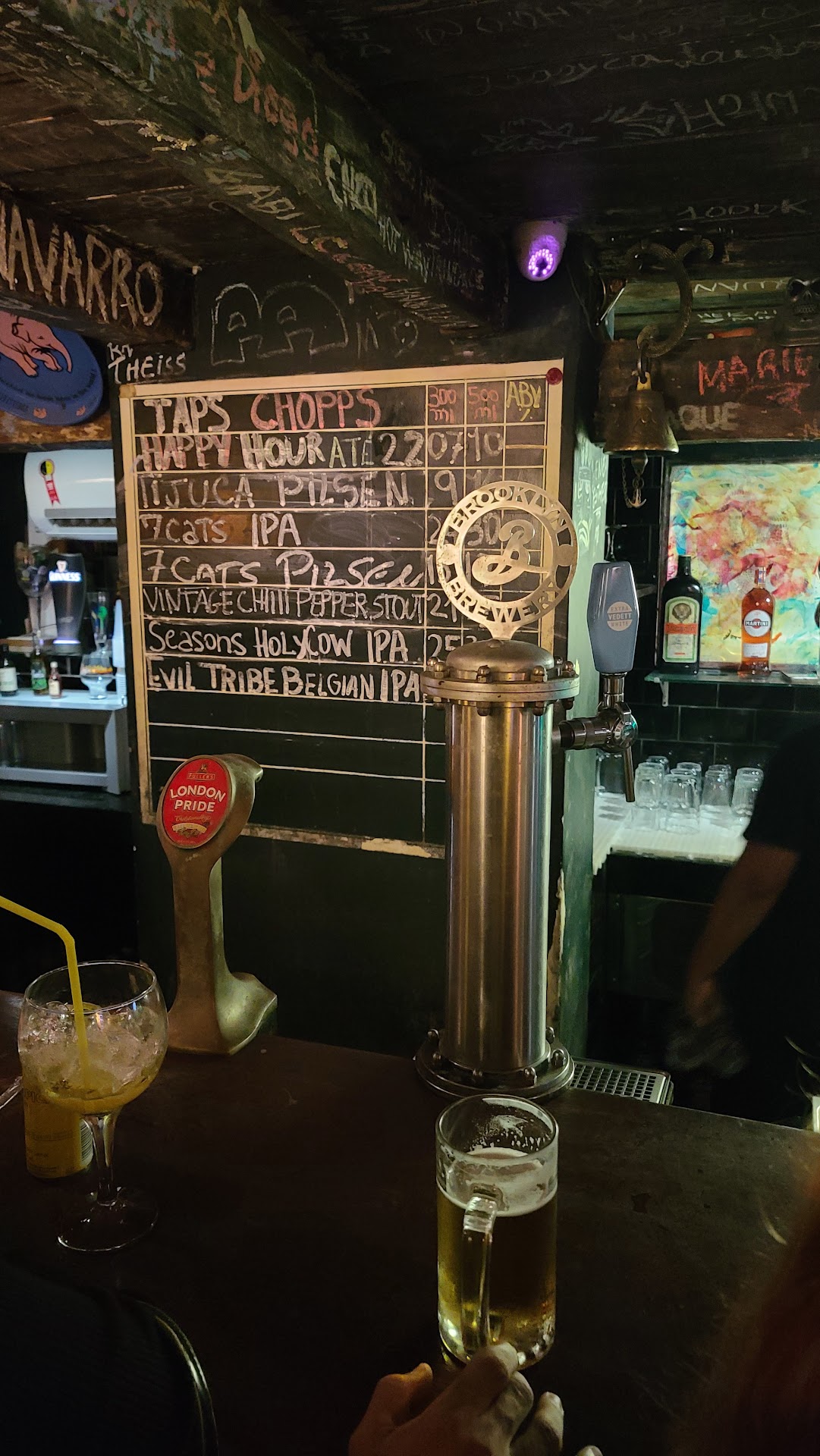 Read moreArrisco em dizer que seja o melhor Pub da cidade. O Ambiente pode parecer claustrofobico ou apertado, em uma primeira impressão, mas ao passo que vc se conecta com o local, a musica, os chopps e as pessoas, vc tem diversão garantida! O pouco espaço e os poucos assentos mostram que a casa está sempre cheia ou lotada, e de pessoas bonitas e interessantes que curtem de verdade o que um pub londrino pode oferecer. Aqui a clientela é mais exigente e sai satisfeita. O pub oferece uma carta de chopps artesanais variados, o bom e popular chopp de tijuca, além de vinhos, whisky e vodca, com drinks de qualidade. Têm hamburgues, batatas e outras comidinhas de pub. Pontos fracos: nao oferecem frios como tira-gosto e nao possui televisores. Portanto, não transmitem jogos e lutas, para vc q queira visitar e assistir algum evento do tipo, já está avisado. Aqui vc não assistirá nada que não seja uma excelente apresentaçao de bandas de rock, Jazz ou blues e gente interessante! Visite e aproveite para formar novas amizades. Edição: recentemente instalaram duas TVs. Agora já dá pra acompanhar eventos...