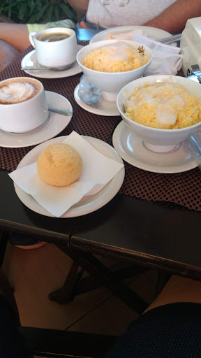 Read moreum ambiente gostoso, apesar de um pouco abafado. tem uma estrutura legal pra quem quer só tomar um café rápido ou ficar um pouco mais. o cuscuz é bem molhado e custa cinco reais, é bem servido. o pão de queijo custa três mas é um pouco pequeno para o valor. porém consegue-se fácilmente tomar um café da manhã bom com cerca de dez a quinze reais. quando pedimos a senha da Internet nos trouxeram um papel com a senha impressa, o que mostra um preparo e boa vontade pra quem quer ficar...