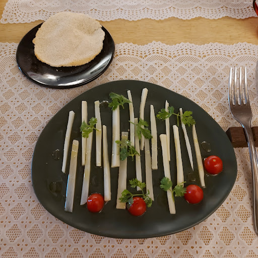 Chegamos depois das 14h (o almoço vai até às 15h) e ainda havia fila. Esperamos por volta de uns 30 até sermos acomodadas. No ambiente de espera nos informaram que era possível pedir algo para beber enquanto esperávamos uma mesa, mas que não seria possível servir nenhum petisco/entrada. Cinco minutos depois, serviram entradas para um grupo de pessoas que esperava ao nosso lado, e a própria chef veio cumprimentá-los. Talvez seja melhor ser 7m conhecido nesses momentos, rs.