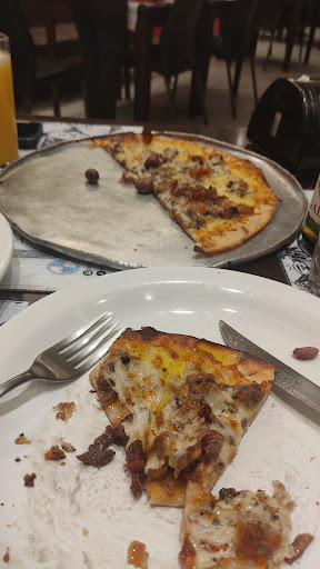 Read moreEu achei o ambiente super aconchegante e até romântico por conta do escuro kkk. Achei o atendimento bom, o que não gostei mesmo foi da comida, pedi de entrada um pão de alho e me trouxeram fatias de torrada aromatizada com alho. Pedi uma pizza de bacon com catupiry, que particularmente não gostei, pois o bacon estava muito seco, estorricado mesmo e também não gostei do sabor da massa. Quase que não consigo comer o segundo pedaço, pq realmente não era uma pizza saborosa. Tem banheiros e...