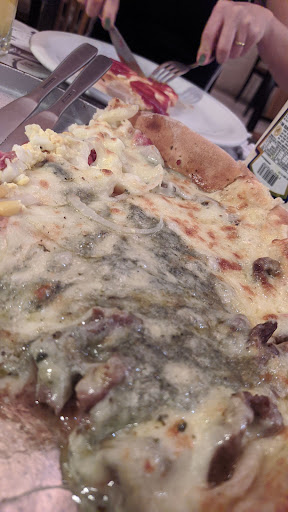 Um adendo, a gente tava num lugar meio ruim, mas isso foi culpa da minha amiga que escolheu a mesa, e como era o aniversário dela eu fiquei: quer esse lugar aqui? Então tá? Mas aí tem o resto também. Tinham uns garçons gente boa, mas como a casa tava um pouco mais cheia, eles entregaram uma das pizzas primeiro e já foram logo servindo, e a gente queria comer da outra pizza também. Não tinha mais jarra de suco e eles serviram nos copos mesmo, foram bem invasivos na hora de servir e de retirar os pratos de pizza, verificando se a gente já tinha acabado de comer pra retirar os pratos. Quererem retirar logo pra não atrapalhar a gente na mesa? Ok. Por que estavam precisando de prato? Tudo bem, eu concordo. Agora custa pedir pelo menos uma licença antes de meter a mão lá? E que restaurante é esse que não tá preparado pra casa cheia? Que quando tá um pouquinho mais lotado, tem que meter a mão e ficar enchendo o saco do cliente pra ver se acabaram de comer?? E tenho outras queixas desse tipo relacionadas a gerência do restaurante que são de uma outra vez que a gente foi lá e o atendimento do gerente foi horrível, teve confusão por causa de uma reserva que a gente fez lá, e por causa disso a gente falou que não ia mais voltar lá. Voltamos esse ano porque a pizza é muito boa, mas o atendimento só caiu a qualidade. Vale mais a pena ir num outro lugar mais bonito e pedir a pizza do que querer comer lá, porque pagar caro pra ser mal...