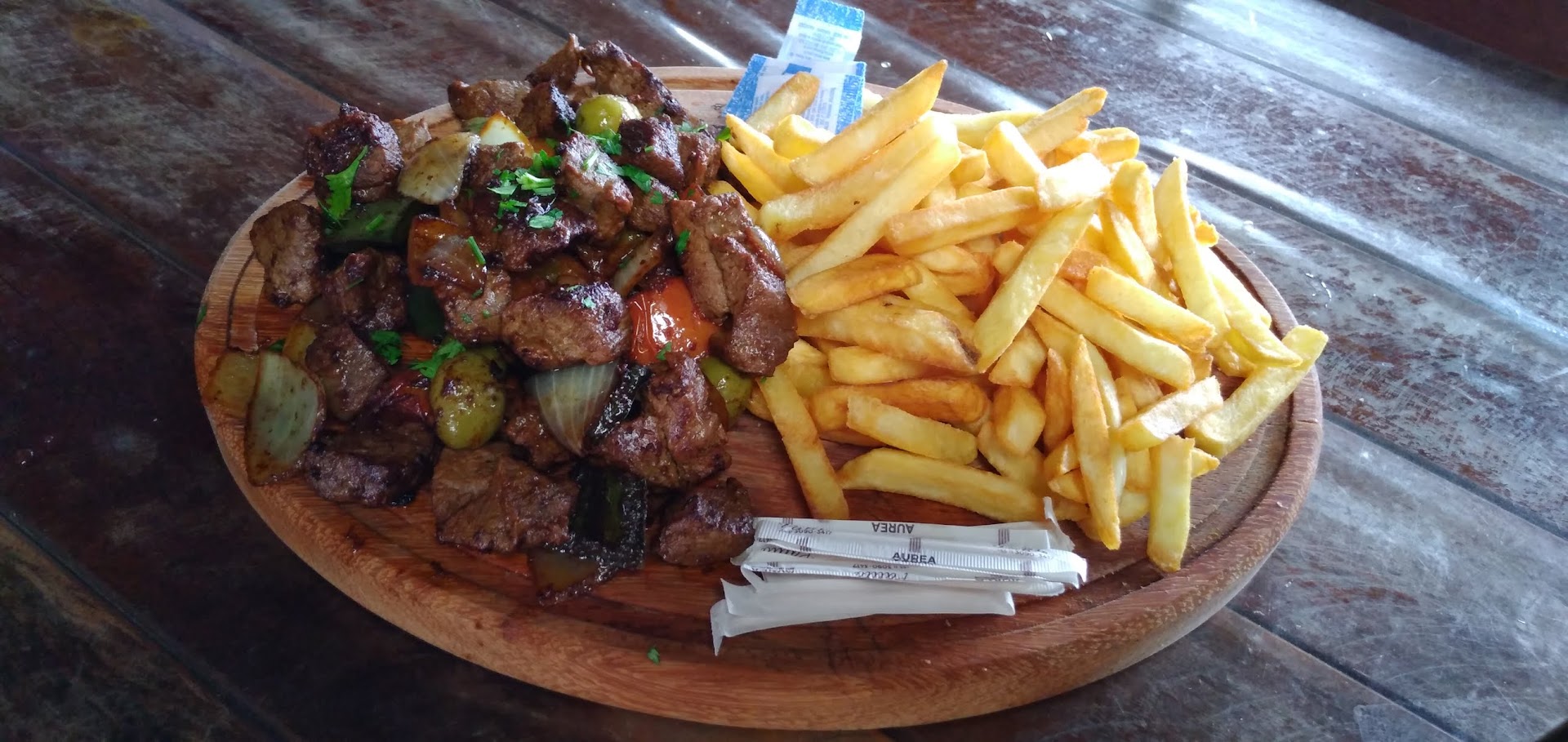 A Chapa Mista de Filé com Fritas estava no ponto, perfeita, suculenta; e os frutos que a acompanhavam (azeitona e tomate), bem cozidos, como também a cebola, a qual possuía a quantidade certa de água, o que auxiliou a reter...