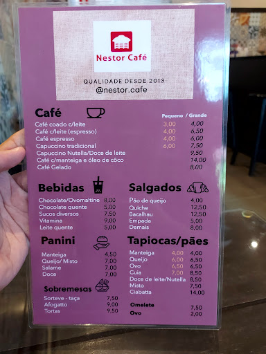Read moreAmbiente climatizado, serve almoço e lanches com valores acessíveis e deliciosos, as massas que vende são de excelente qualidade, sempre tem promoção de lanches, atendimento muito bom, ambiente agradável, limpo e lindo, a decoração é charmosa e aconchegante, oferece música ambiente agradável, tem banheiro para clientes, porém não oferece estacionamento, o que não é um problema, pois vale o esforço de arrumar uma vaguinha ali por perto e ir conhecer o Nestor café, aliás o Nestor dono da loja é uma pessoa super gentil e acolhedora o que dá um ar familiar...