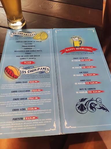 Read moreCara, eu amei a experiência no local! Eu sempre passava em frente, mas tinha receio de entrar achando que era apenas um bar. Mas aí eu vi que tinha Belém em Dobro e resolvi conhecer. Pedimos de entrada uma empanada de pernil (que eu particularmente não curti muito), aí depois pedimos Choripan tradicional que está no Belém em Dobro e ele tava muuuuito gostoso, fora que veio acompanhado de uma geleia de pimenta e outros molhos que não lembro, porém estão aí nas fotos. Não satisfeito pedimos um chamado "Chori Azul" que também está aí na foto ele estava ESPETACULAR. Pra beber eu pedi uma "Rosasa" que é uma Pink limonada, ela também estava maravilhosa e veio do jeito certo bem geladinha sem precisar colocar um monte de cubo de gelo que alguns lugares estão acostumados a fazer dessa forma. Experiência NOTA MIL! Ps: bati foto do cardápio pra vocês verem os valores (eu achei que...