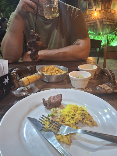 Read moreTem tudo pra ser uma boa opção, precisaria alterar a opção de carne do espeto (dureza cortar essa carne), opção de cerveja só Heineken ou Chopp que vem bem gelado, mas o sabor meio estranho. Como as mesas são pequenas, as porções do acompanhamento já deveriam vir servidas dentro do prato ( evitar tanta cumbuca em pouco espaco). O ambiente é ventilado, a churrasqueira joga fumaça em direção a parte dos clientes devido o vento ( acho normal isso). PS.: no Skinamix o espeto já vem dentro do prato com o acompanhamento e não vejo nenhum problema nisso. Pois a pessoa que me serviu falou que os clientes reclamam se o acompanhamento já for servido no prato, acho que estes clientes já...