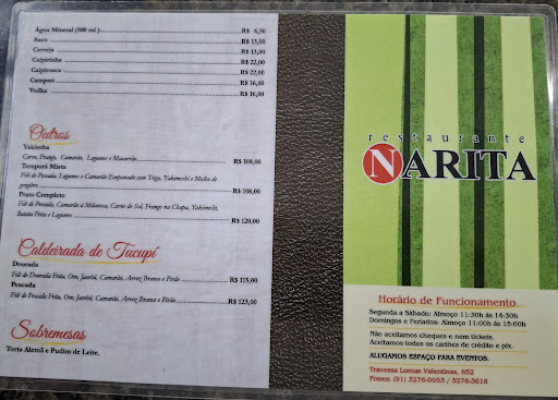 Restaurante Narita tem uma ótima comida, o tempero é muito bom e o cardápio conta com as opções de chapa e milanesa que já vemos por aí, tempurá, caldeiradas são um diferencial. Infelizmente o atendimento é um pouco deficiente, os pratos demoram um pouco. O local em si precisa de cuidados, uma parede descascada aqui, um teto manchado ali... Possui um estacionamento que na verdade não serve pra nada apenas 3 vagas mas da pra deixar o carro na rua de boa. Um ponto positivo é o acesso facilitado para deficientes, com rampa e piso nivelado. Caso queira levar para casa, pode ligar antes e fazer o pedido e depois passar para pegar mas eu sempre fico com a impressão de que dessa forma vem menos comida. Em fim, comida boa, atendimento e...